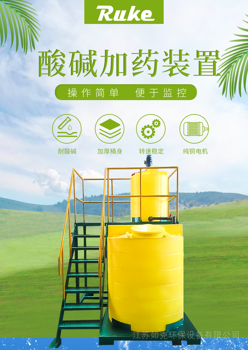 加药装置主要配套压滤机、气浮机等污水处理设备使用。用于电厂、石油、化工、环保、供水系统等行业的给水、炉水、循环水及废水处理,具溶药、投药、搅拌、输送液体与一体的成套设备,主要有溶药箱、无极调速器、搅拌器、加药箱、磁力泵、流量计以及各种阀门管件等组成的一体化装装置。这种工厂化的整套装置,可大大减少设计和现场施工的工作量,对整机的质量、安全和现场投运提供了可靠的保证。如投加混凝剂、絮凝剂、磷酸盐、氨液、石灰水、水质稳定剂(缓蚀剂)、阻垢剂、液体杀虫剂等。