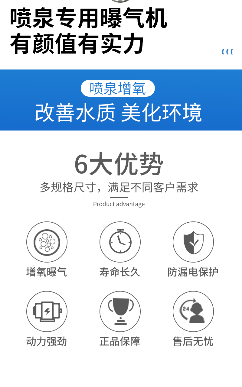 2、使用可靠性强、输出,水循环效果明显;结构紧凑、高性能、低损耗、噪声小、故障率低、溶氧等节能环保优点。